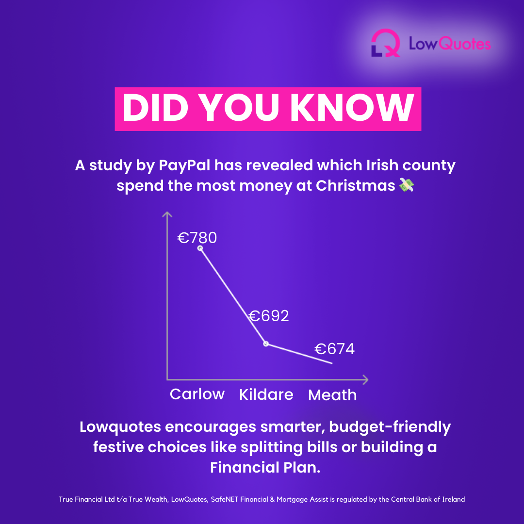 When it comes to Christmas shopping, Carlow takes the crown as the biggest spender in Ireland, with locals planning to spend an average of €780 on gifts this year. Kildare and Meath aren’t far behind, with €692 and €674, respectively.